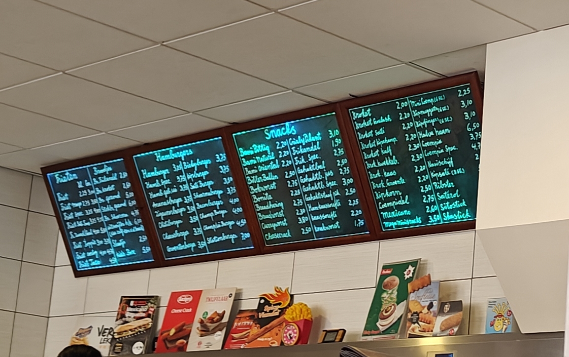 - Fried snacks: Typical frituur items such as kroket, frikandel, and other quick-serve fried foods.
